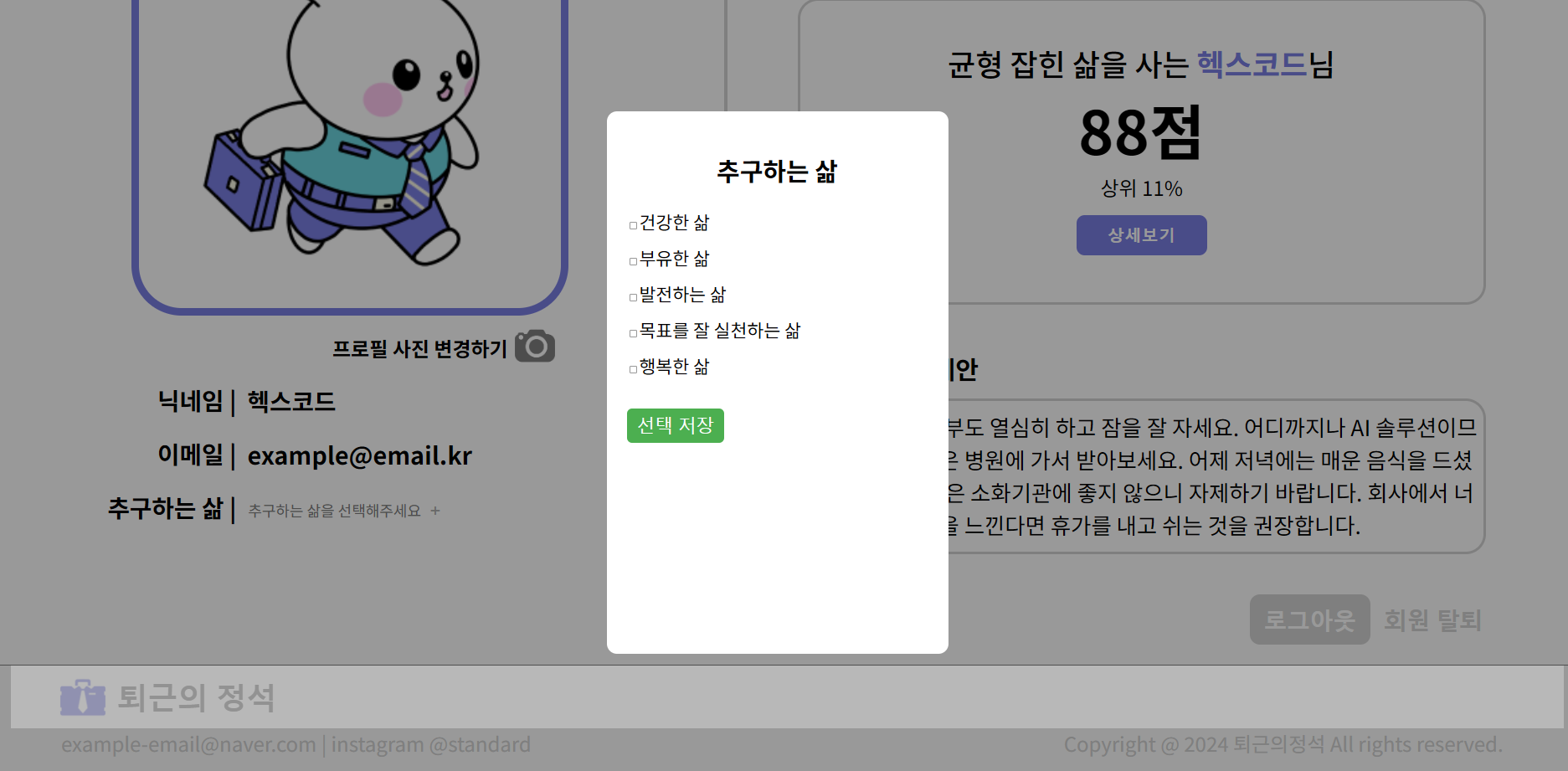 "추구하는 삶" 팝업창 뒷배경으로 투명도가 부여된 div를 만들었더니, 이 div보다 더 뒤에 있어야 할 "퇴근의 정석" div가 위로 올라왔다.